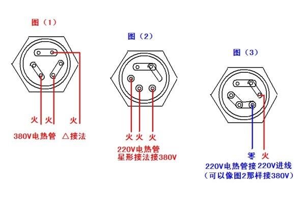 4、星型接線法:使用這種接法,電加熱管的總電壓等于各相電壓*1.732。也就是說三根220V的加熱管應該接220*1.732約等于380V的電源。